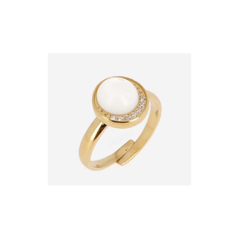 Bague ZAG BIJOUX en acier doré avec nacre et strass. Taille ajustable.