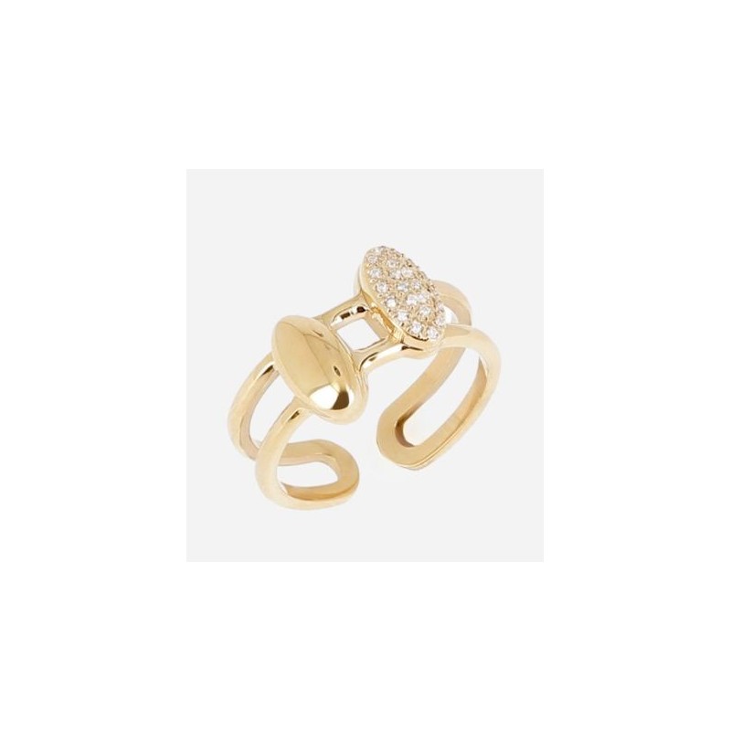 Bague ZAG BIJOUX en acier doré avec strass. Taille ajustable.