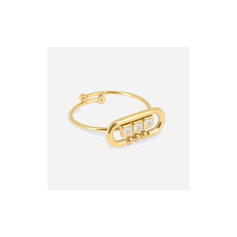 Bague ZAG BIJOUX en acier doré avec strass. Taille ajustable.