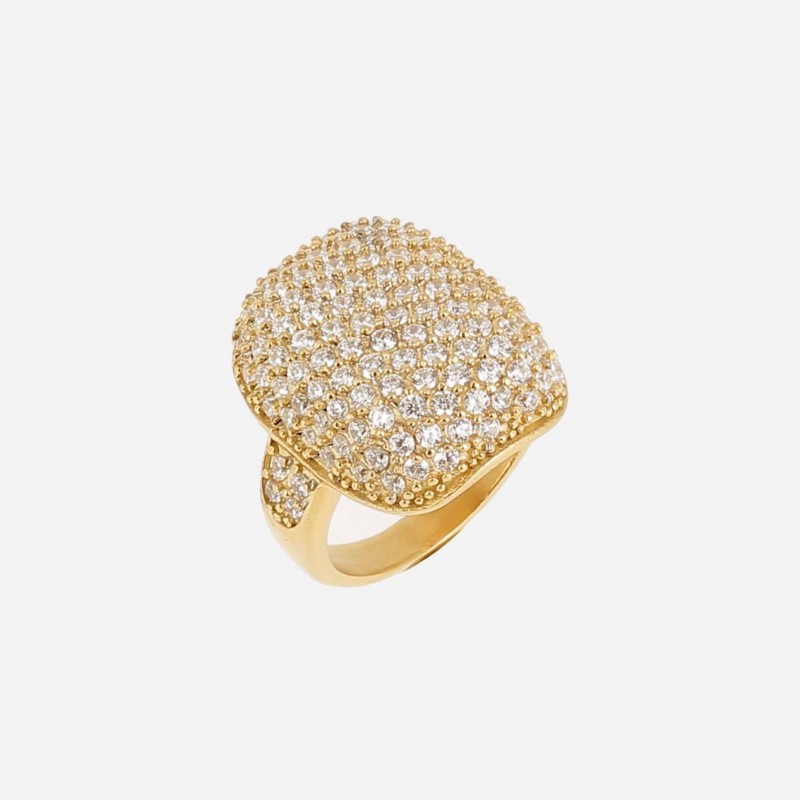 Bague ZAG BIJOUX en acier doré avec strass. Taille 54.