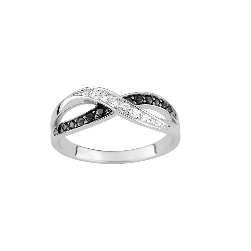 Bague en argent 925/1000 rhodié serti d'oxydes de zirconium noirs et blancs. Taille 54. Poids: 2.40g