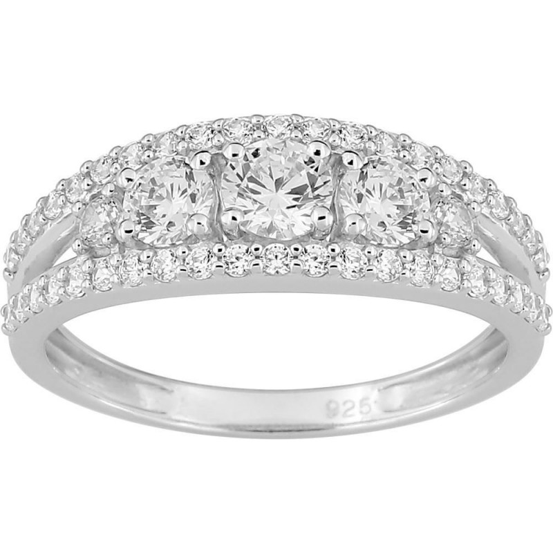 Bague en argent 925/1000 rhodié sertis d'oxydes de zirconium. Taille 54. Poids: 1.70g