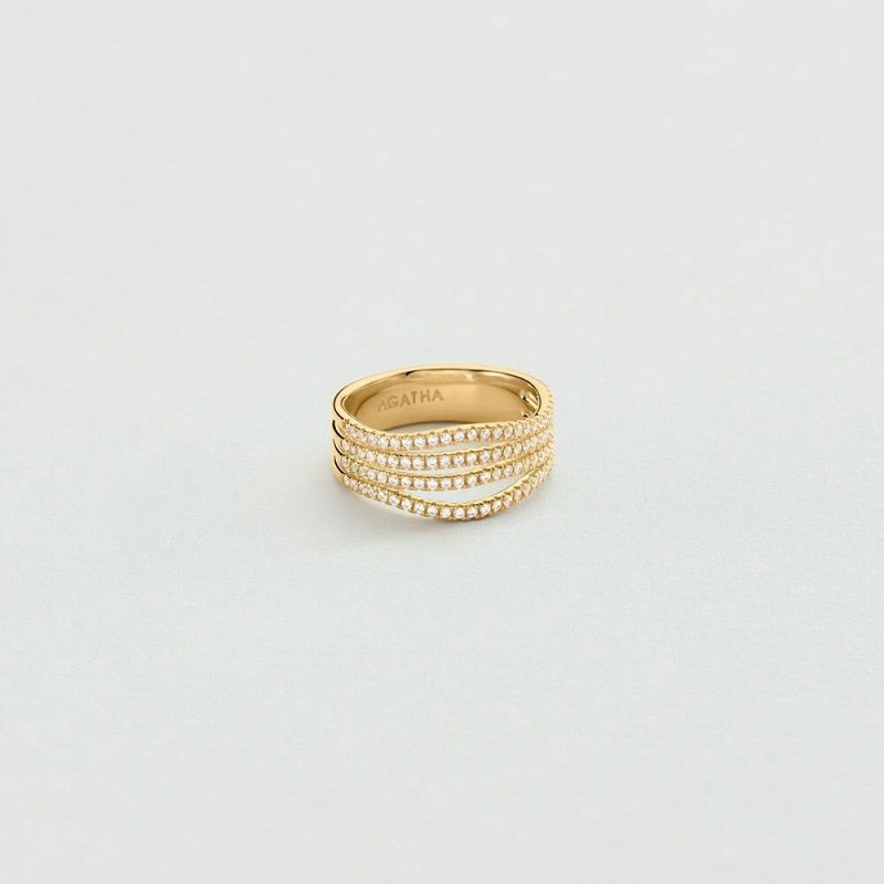 Bague AGATHA en argent 925/1000 et plaque or sertis d'oxydes de zirconium. Taille 56.