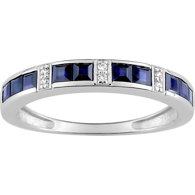 Bague en or 375/1000 blanc sertis de saphirs et oxydes de zirconium. Taille 54. Poids: 1.85g