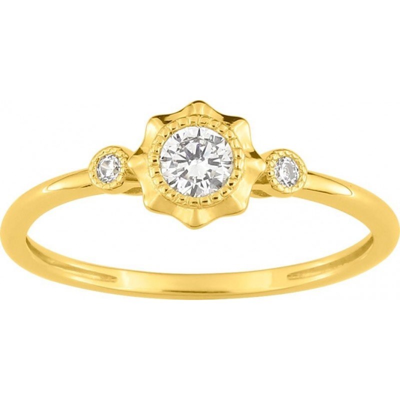 Bague en or 375/1000 jaune serti d'oxydes de zirconium. Taille 54. Poids: 0.95g