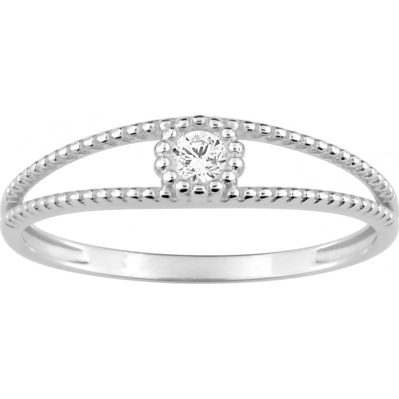 Bague en or 375/1000 blanc sertis d'oxydes de zirconium. Taille 54. Poids: 0.95g