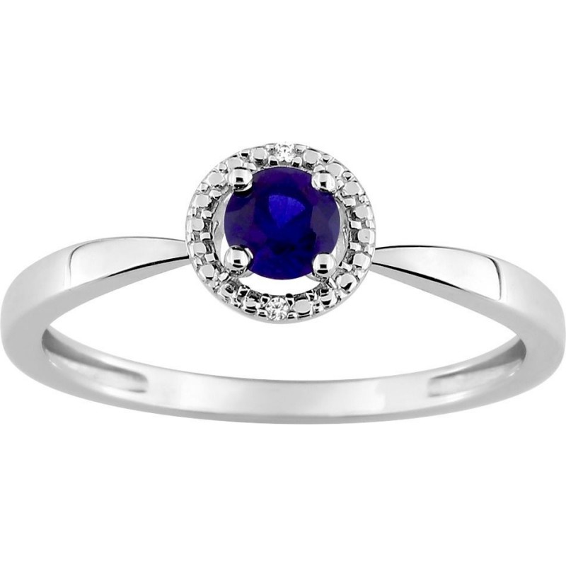 Bague en or 375/1000 blanc sertis d'un saphir et d'oxydes de zirconium. Taille 54. Poids: 1.30g