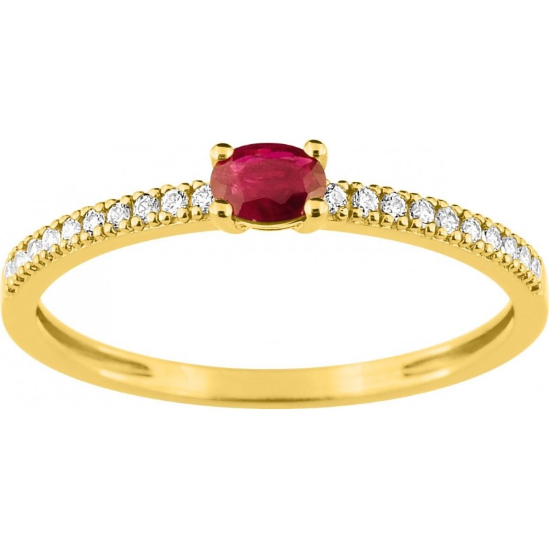 Bague en or 375/1000 jaune serti d'un rubis et d'oxydes de zirconium. Taille 54. Poids: 0.90g