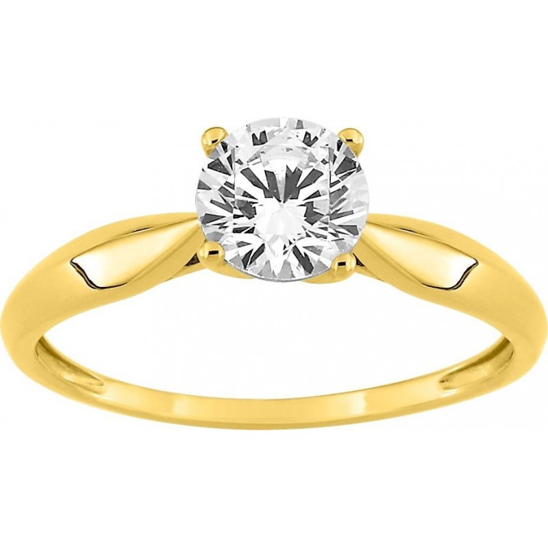 Bague en or jaune 375/1000 solitaire d'oxyde de zirconium. Taille 56. Poids: 1.20g