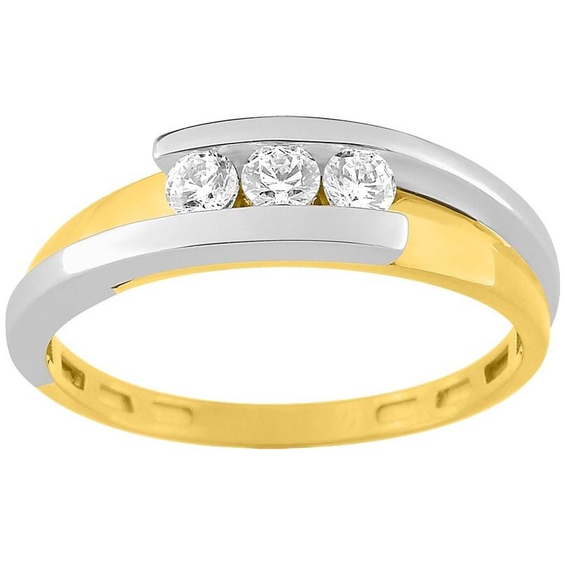 Bague en or 375/1000 bicolore (jaune et blanc) trilogie d'oxydes de zirconium. Taille 54. Poids: 1.20g