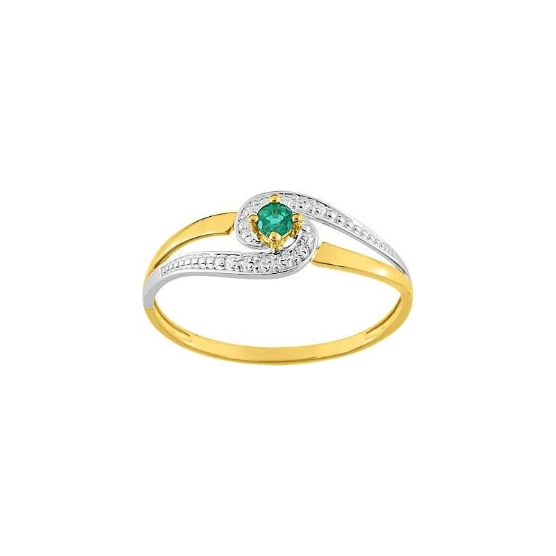 Bague en or bicolore 375/1000 serti d'une emeraude et or blanc travaillé. Taille 54. Poids: 0.90g
