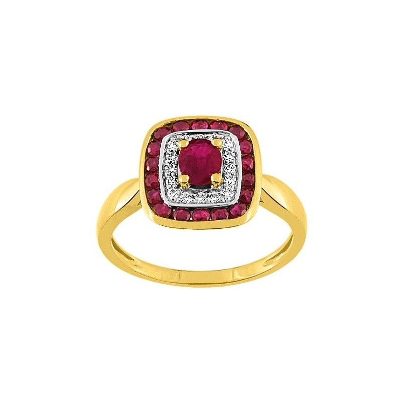 Bague en or 375/1000 jaune serti de rubis et d'oxydes de zirconium. Taille 54. Poids: 1.75g