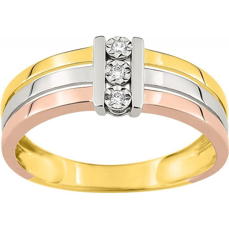 Bague en or 375/1000 tricolore (blanc, jaune et rose) sertis de diamants (0.03ct). Taille 54. Poids: 1.85g