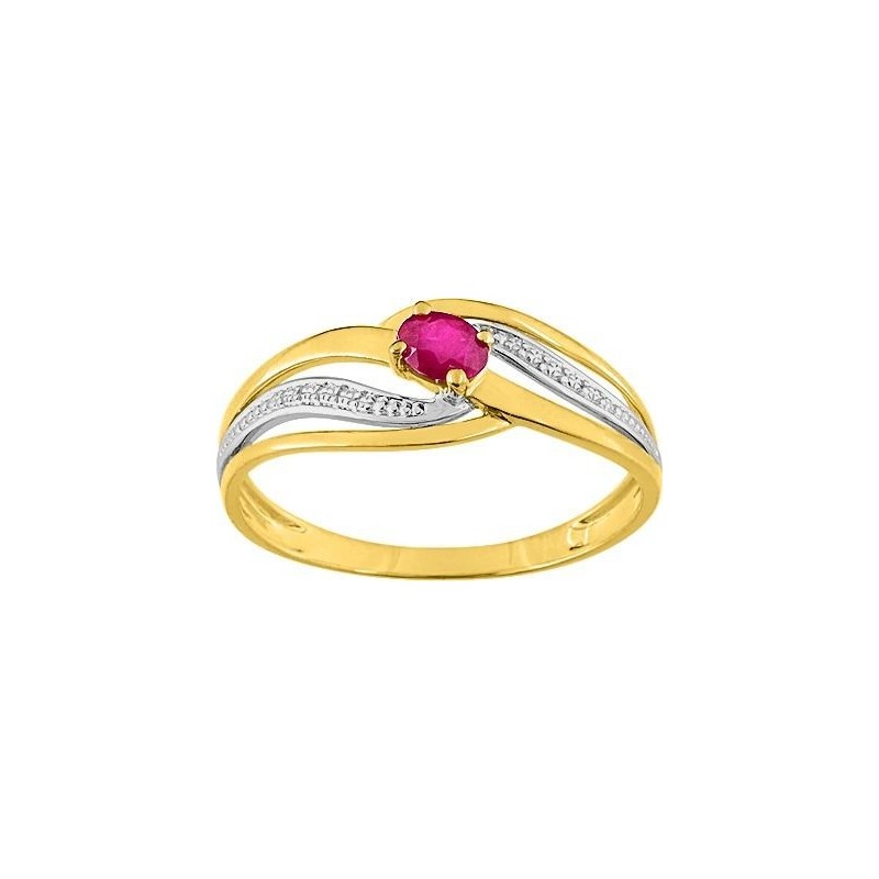 Bague en or jaune 375/1000 serti d'un rubis (diam.4mm) et or blanc travaillé. Taille 54. Poids: 1.20g