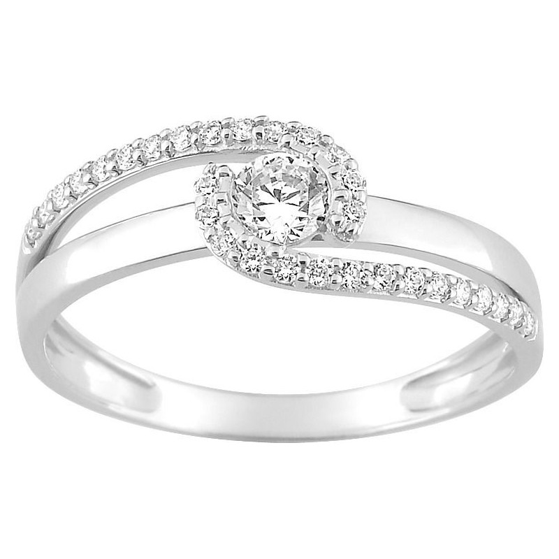 Bague en or 375/1000 blanc serti d'oxydes de zirconium. Taille 54. Poids: 1.30g