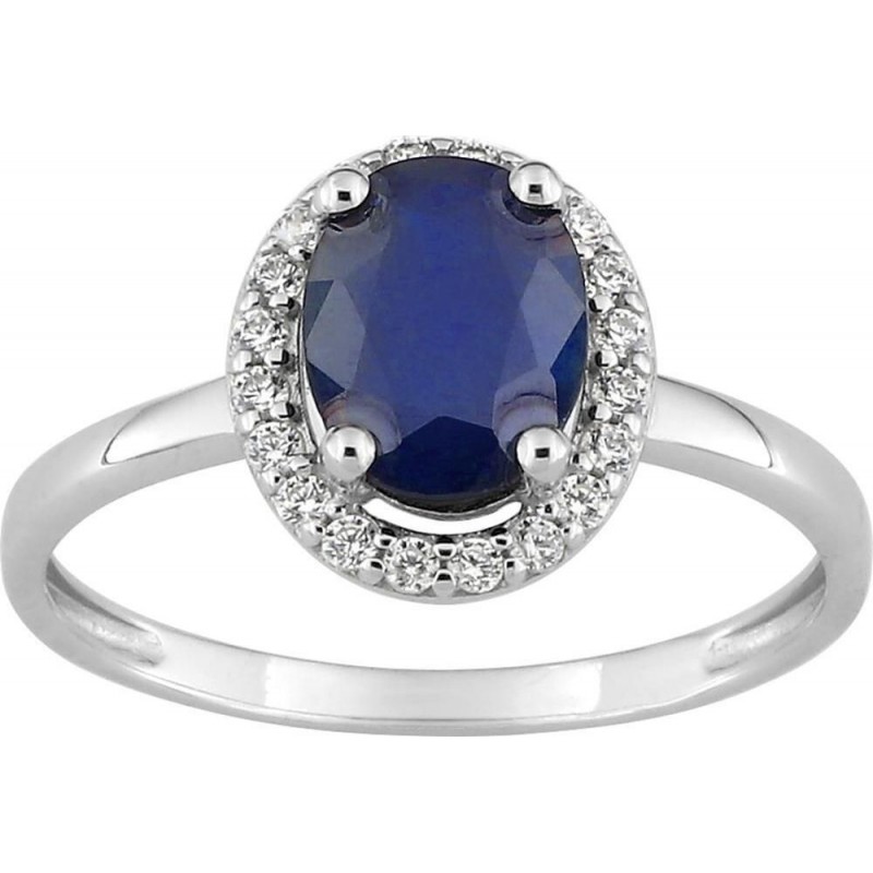 Bague en or blanc 375/1000 serti d'un saphir, entouré d'un rail d'oxydes de zirconium. Taille 54. Poids: 1.35g