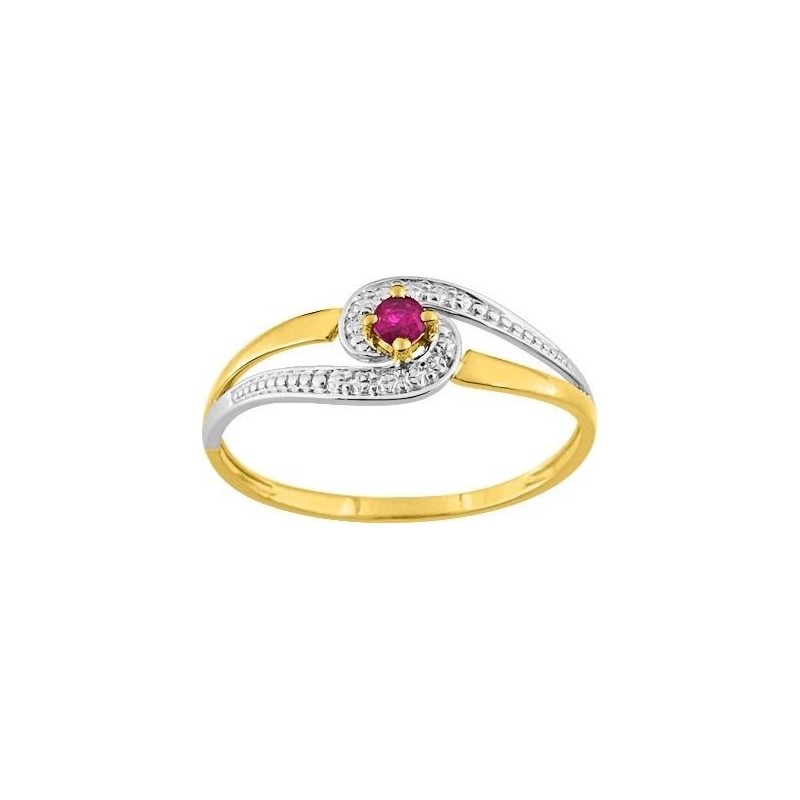 Bague en or 375/1000 bicolore (jaune et blanc) sertis d'un rubis. Taille 54. Poids: 0.90g