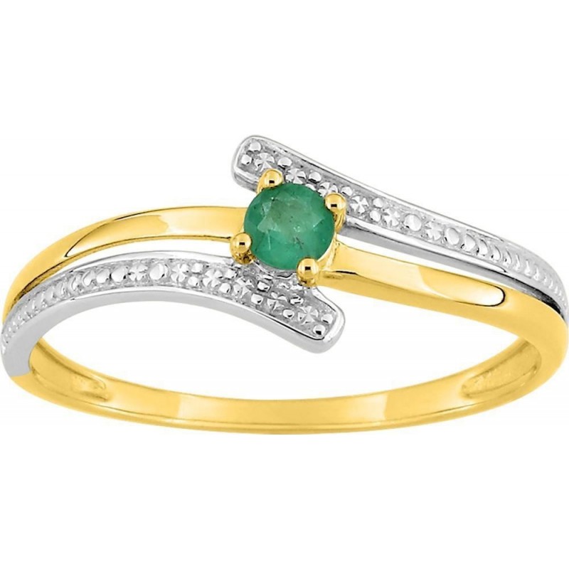 Bague en or 375/1000 bicolore (jaune et blanc) sertis d'une emeraude. Taille 54. Poids: 1.20g