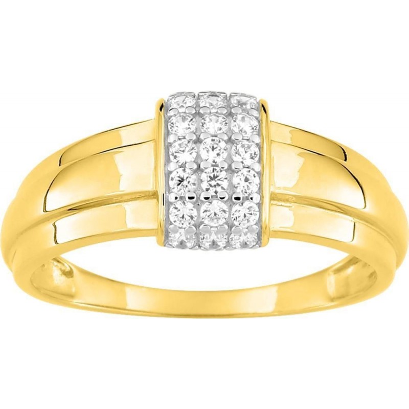 Bague en or 375/1000 jaune sertis d'oxydes de zirconium. Taille 54. Poids: 2.05g