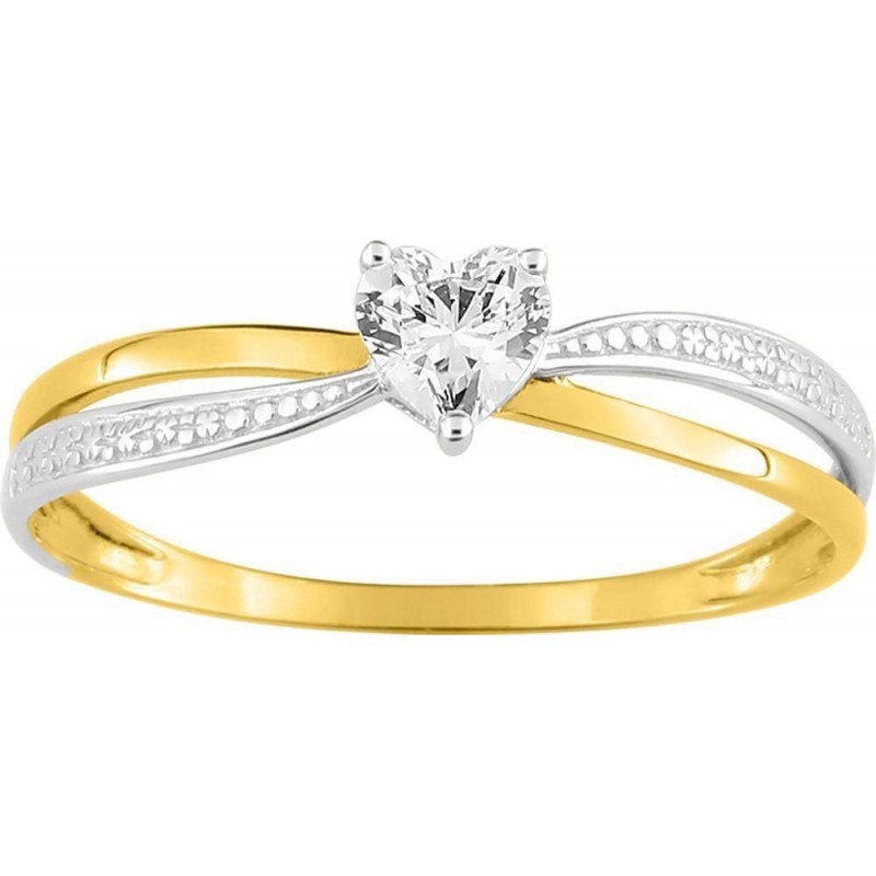 Bague en or 375/1000 bicolore (blanc et jaune) serti d'oxydes de zirconium. Taille 54. Poids: 0.65g