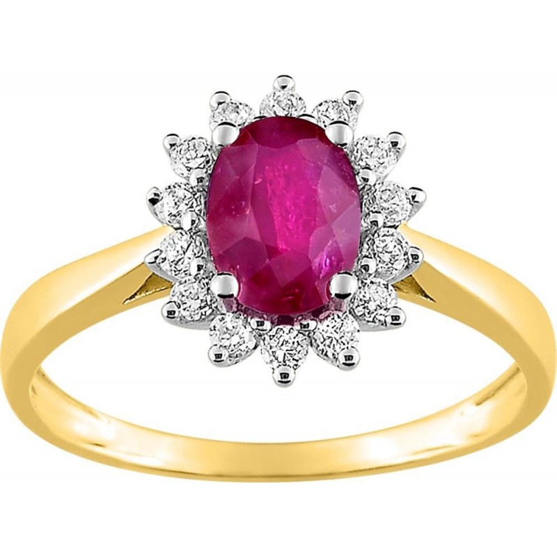 Bague en or jaune 375/1000 serti d'un rubis et d'oxydes de zirconium. Taille 56. Poids: 1.35g