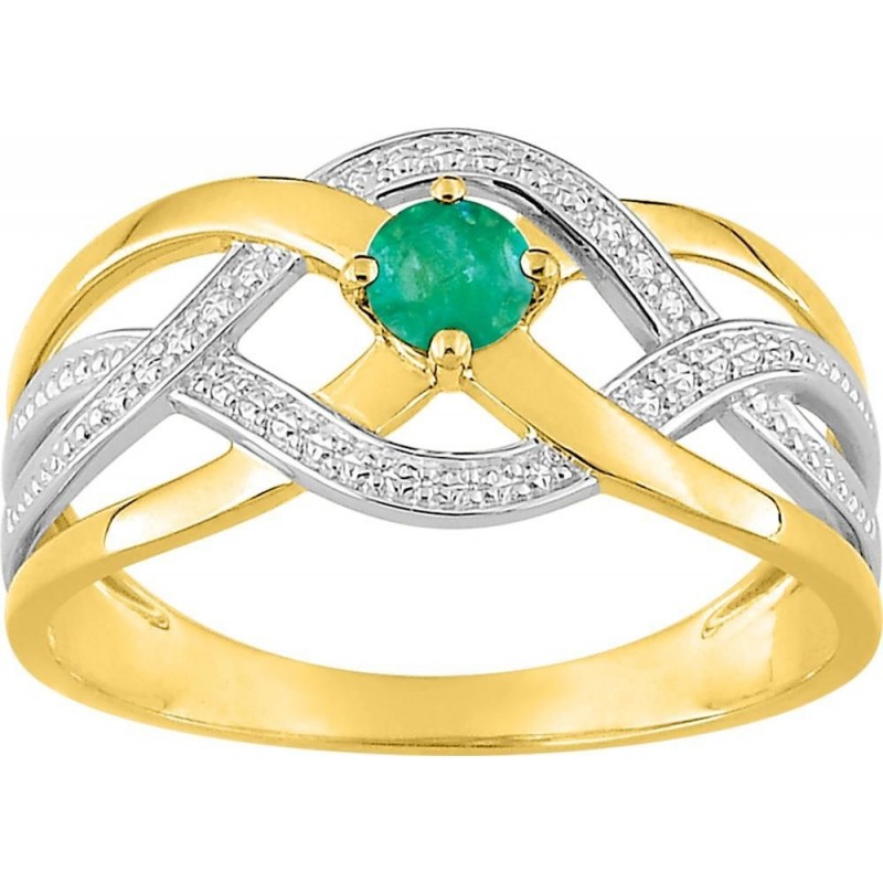 Bague en or 375/1000 bicolore (jaune et blanc) serti d'une emeraude. Taille 56. Poids: 1.85g