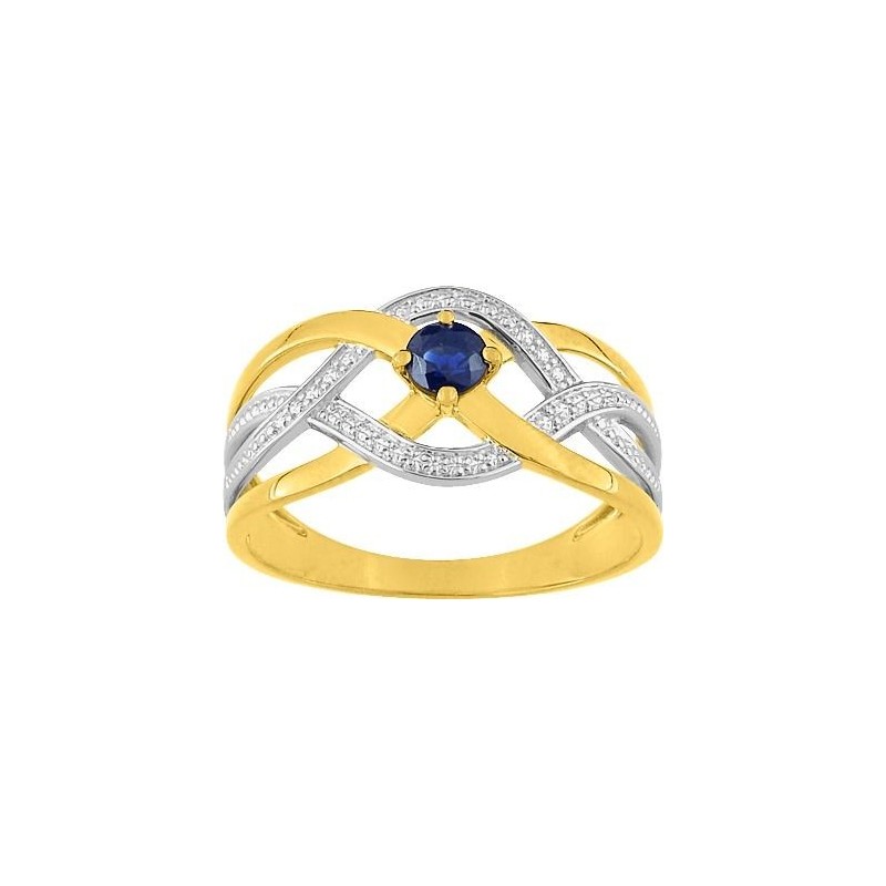Bague en or 375/1000 bicolore (jaune et blanc) sertis d'un saphir. Taille 56.