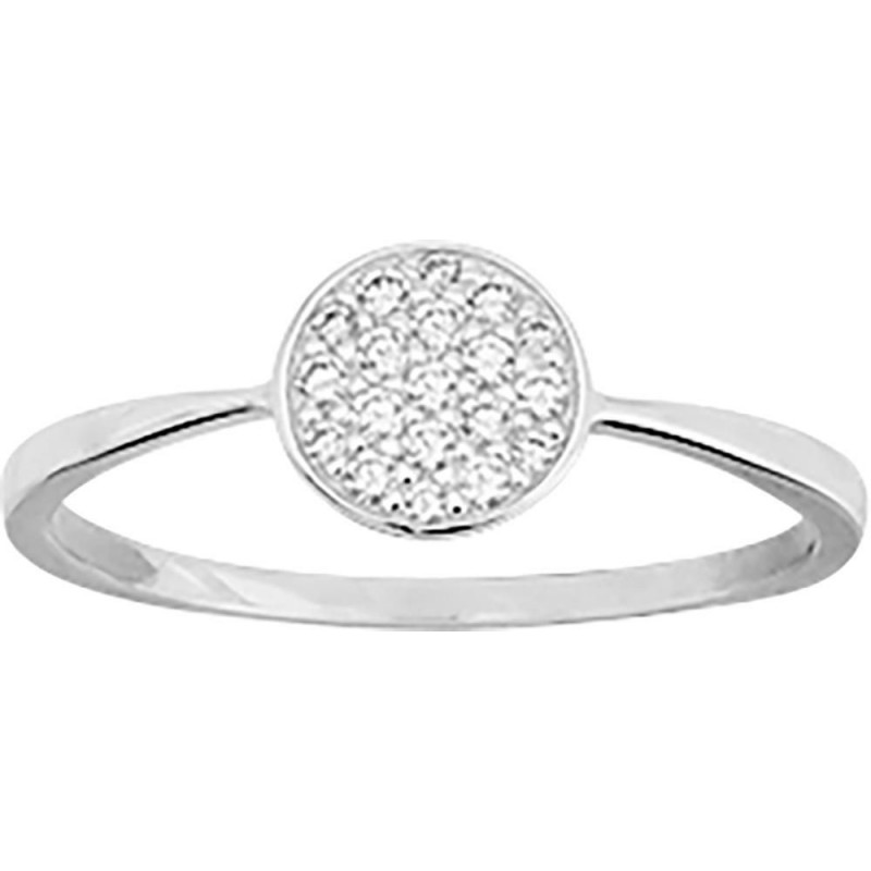 Bague en or blanc 375/1000 avec un pavage en rond d'oxydes de zirconium. Taille 54. Poids: 1.40g
