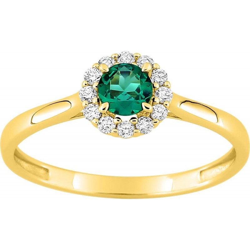 Bague en or 375/1000 jaune sertis d'une emeraude de laboratoire et de diamants de laboratoire (0.13ct). Taille 56. Poids: 1.20g.