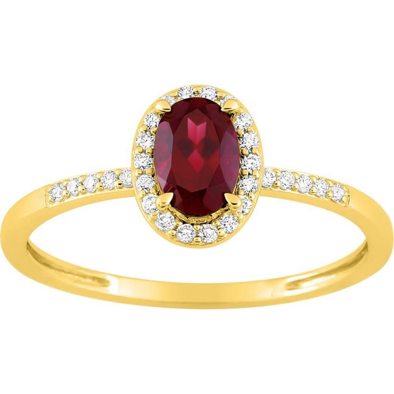 Bague en or 375/1000 jaune sertis d'un rubis de laboratoire et de diamants de laboratoire (0.11ct). Taille 56. Poids: 1.30g.