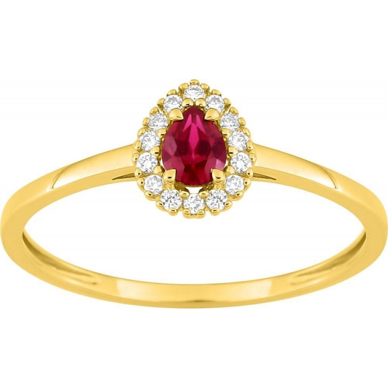 Bague en or 375/1000 jaune sertis d'un rubis de laboratoire et de diamants de laboratoire (0.07ct). Taille 52. Poids: 0.90g.