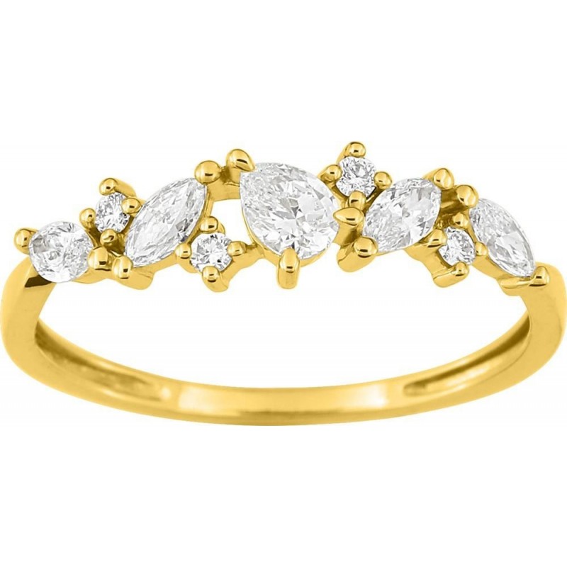 Bague en or 375/1000 jaune sertis de diamants de laboratoire (0.46ct). Taille 54. Poids: 0.95g
