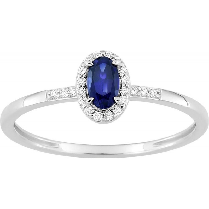 Bague en or 375/1000 blanc sertis d'un saphir de laboratoire et de diamants de laboratoire (0.07ct). Taille 56. Poids: 1.10g.