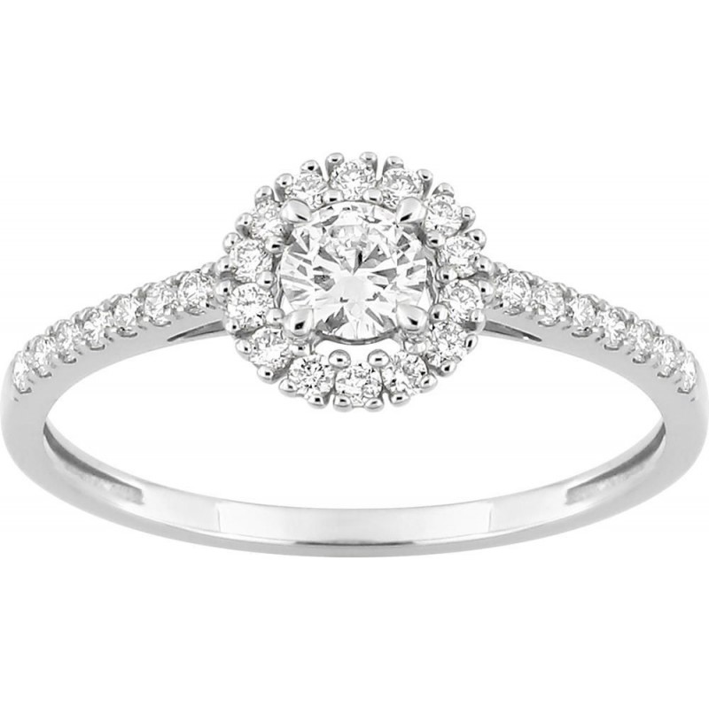 Bague en or 375/1000 blanc sertis de diamants de laboratoire (0.40ct). Taille 56. Poids: 1.25g
