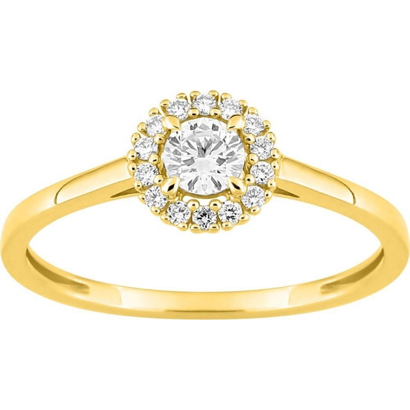 Bague en or 375/1000 jaune sertis de diamants de laboratoire (0.28ct). Taille 54. Poids: 1.15g