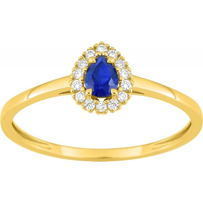 Bague en or 375/1000 jaune sertis d'un saphir de laboratoire et de diamants de laboratoire (0.07ct). Taille 54. Poids: 0.90g.