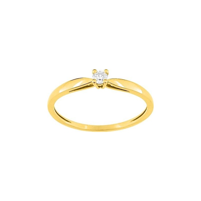 Bague en or 750/1000 jaune solitaire diamant (0.072ct). Taille 54. Poids: 1.25g