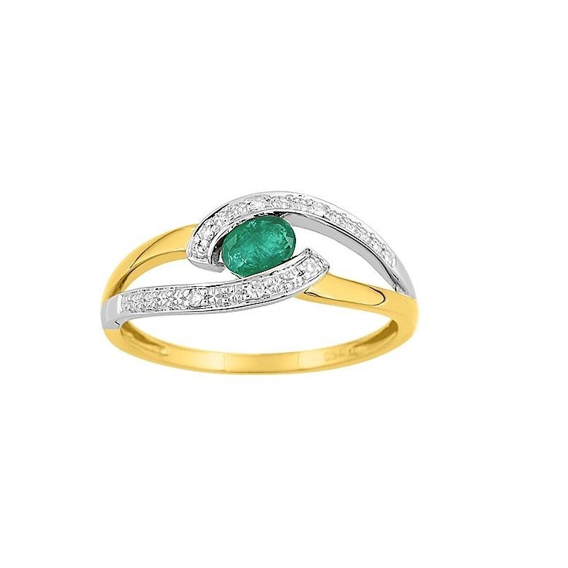 Bague en or 750/1000 jaune serti d'une emeraude et de diamants (0.036ct) sur or blanc 750/1000. Taille 54. Poids: 2.35g