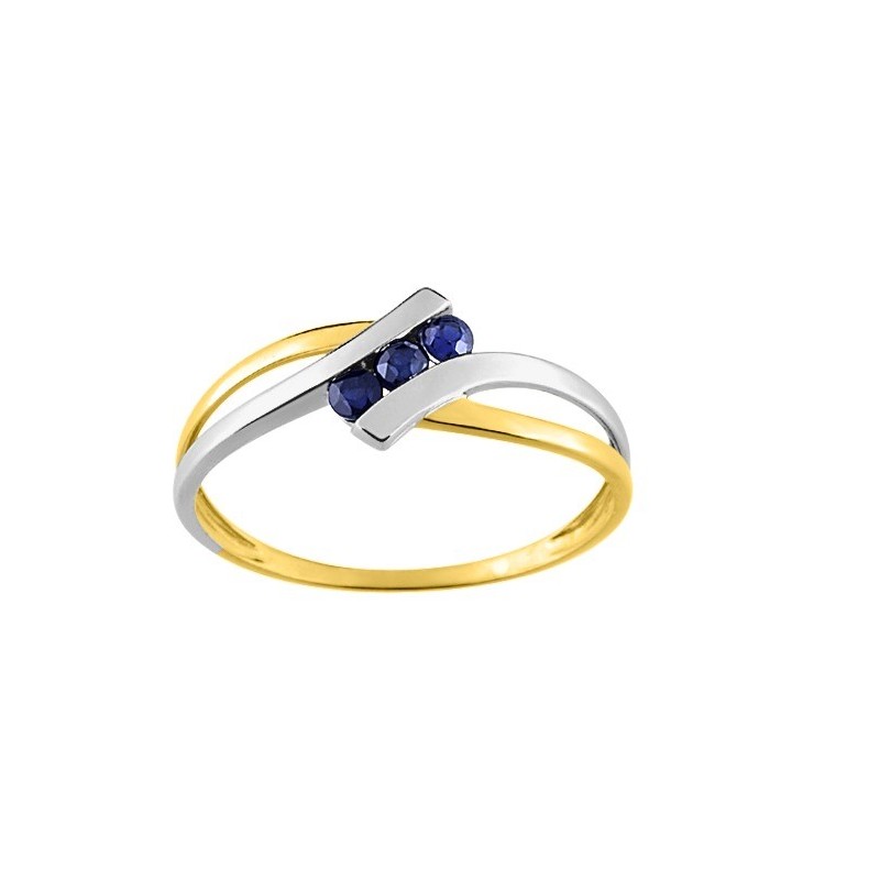 Bague en or 750/1000 bicolore (jaune et blanc) serti d'une trilogie de saphirs. Taille 54. Poids: 1.15g