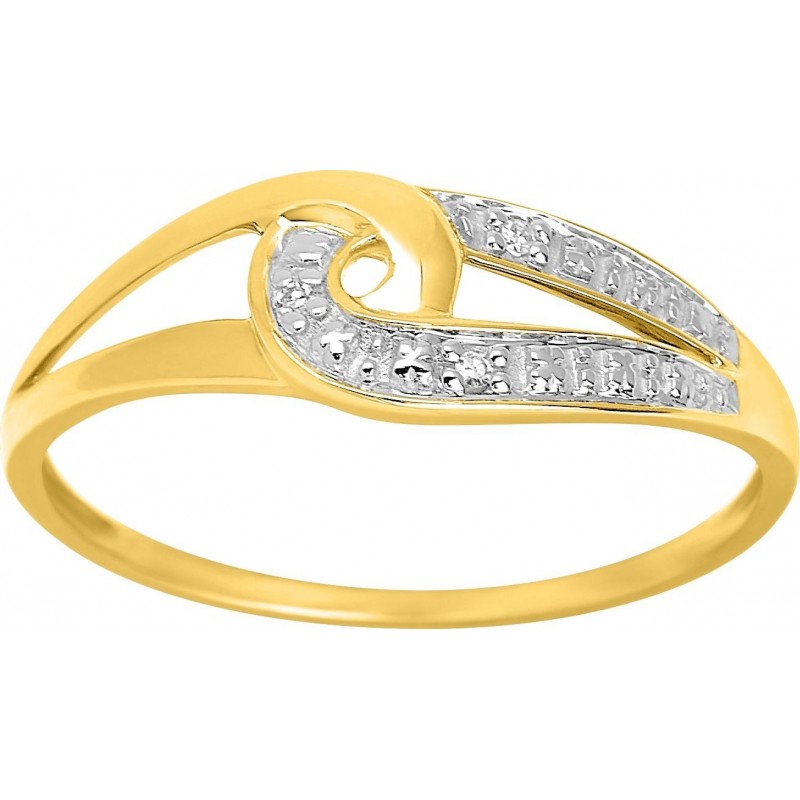 Bague en or 750/1000 jaune serti de diamants (0.01ct) sur or blanc 750/1000. Taille 54. Poids: 1.85g