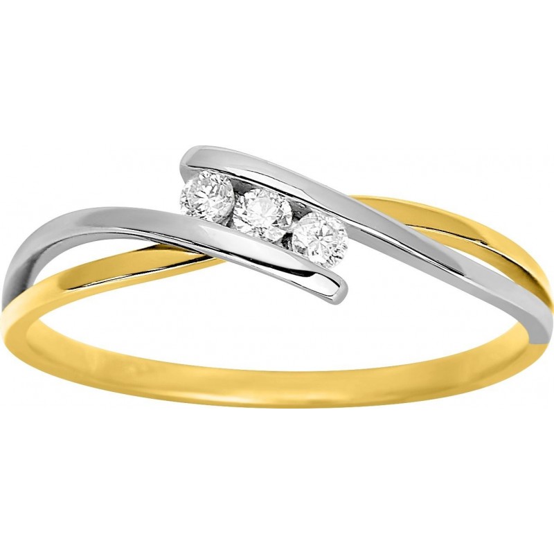 Bague en or 750/1000 bicolore (blanc et jaune) trilogie d'oxydes de zirconium. Taille 54. Poids; 1.55g
