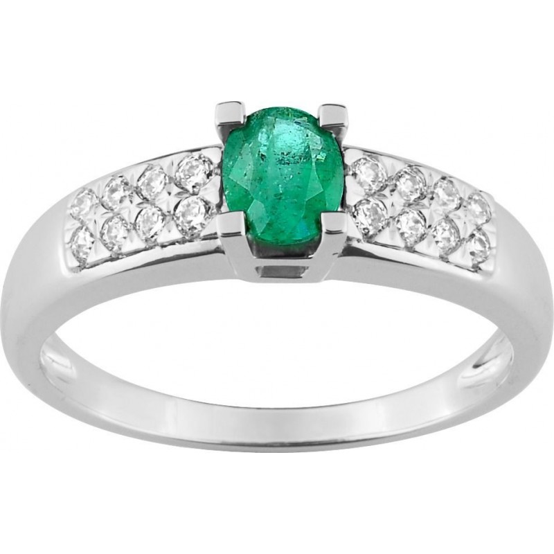 Bague en or 750/1000 blanc serti de diamants et d'une émeraude (0.17ct). Taille 54. Poids: 2.45g