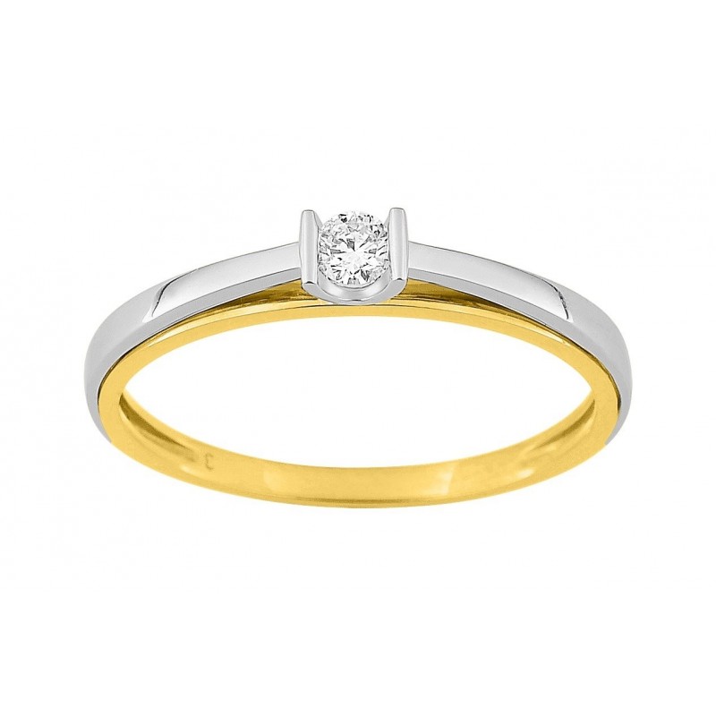 Bague en or 750/1000 bicolore (jaune et blanc) sertis d'un diamant (0.08ct). Taille 54. Poids: 1.70g