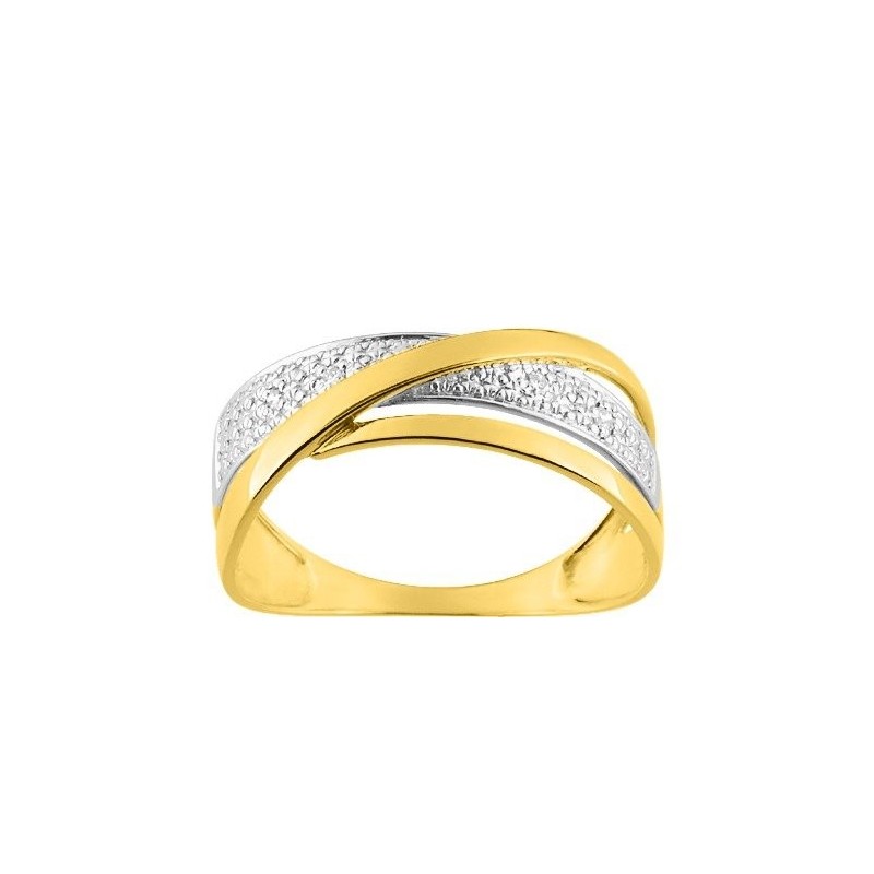 Bague en or 750/1000 jaune sertis de diamants (0.02ct). Taille 54. Poids: 1.95g