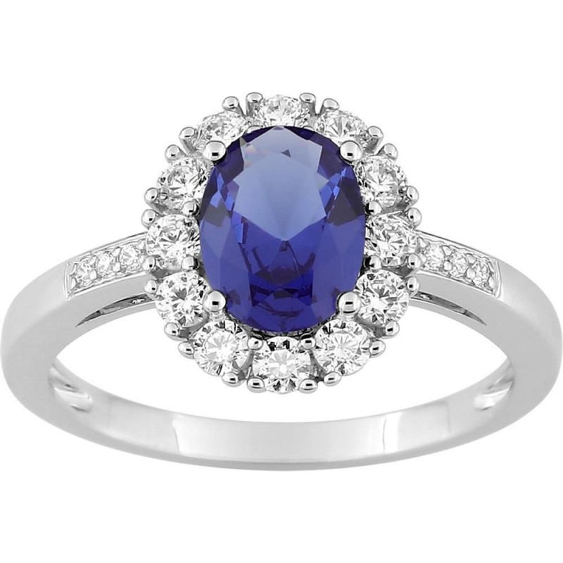 Bague en or 750/1000 blanc sertis de diamants (0.51ct) et d'un saphir de ceylan centrale (8*6mm). Taille 56. Poids: 2.70g