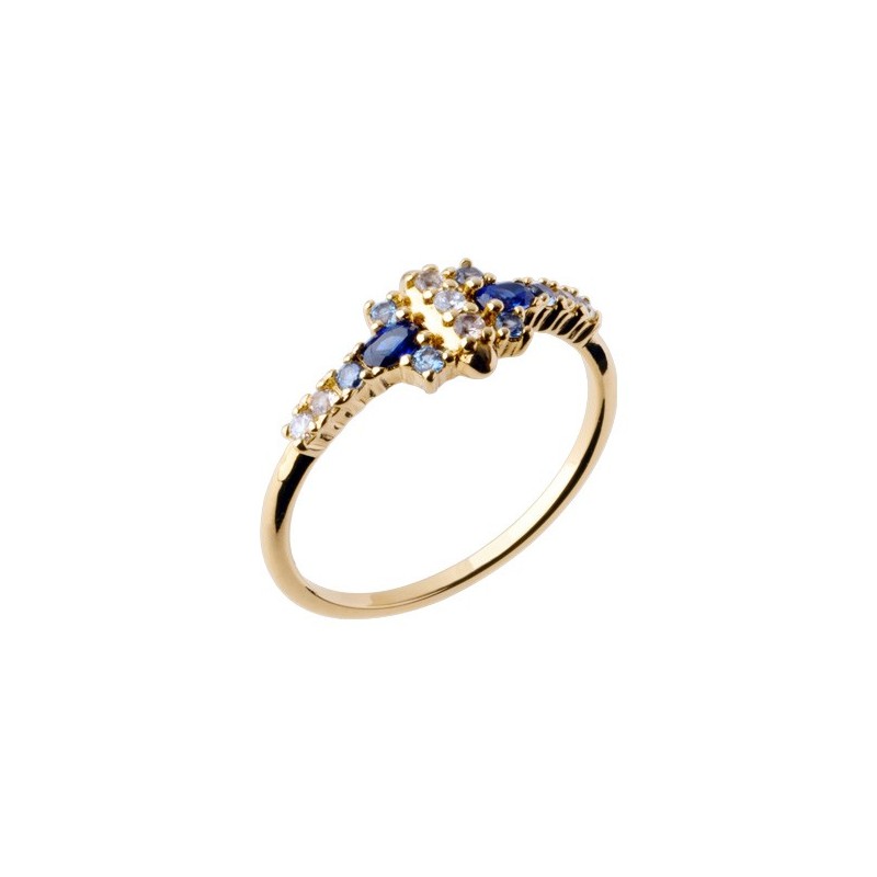 Bague en plaque or sertis d'oxydes de zirconium bleus. Taille 50.