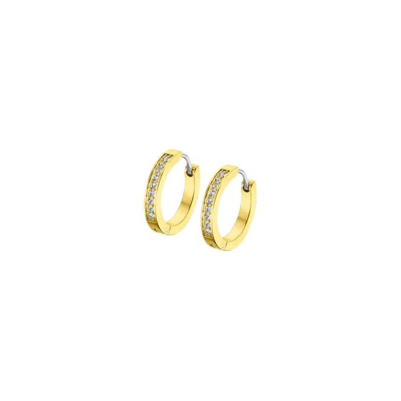 Boucles d'oreilles LOTUS en acier doré avec strass. Système crochet.