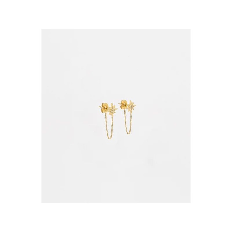Boucles d'oreilles ZAG BIJOUX en acier doré avec strass. Système belge (tige + poussette).