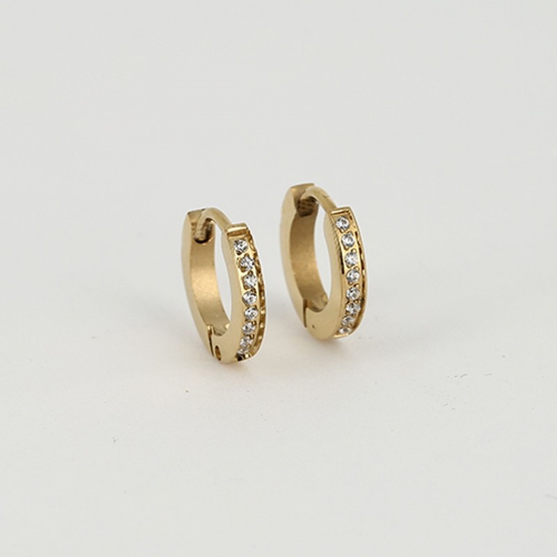 Boucles d'oreilles ZAG BIJOUX en acier doré avec strass. Système crochet.