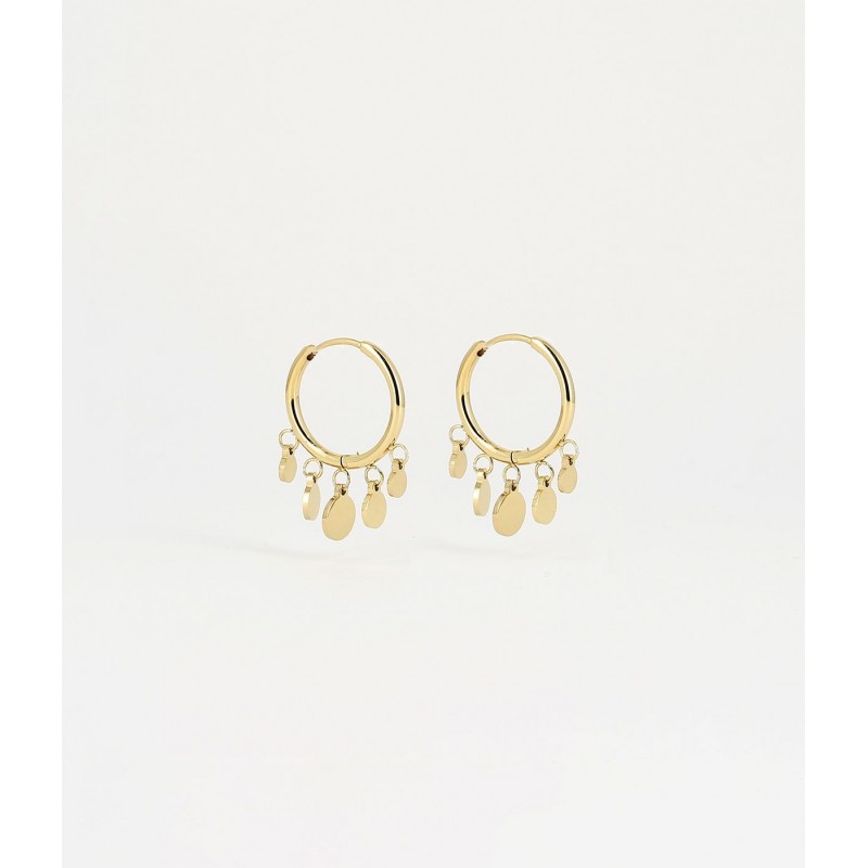 Boucles d'oreilles ZAG BIJOUX en acier doré créoles avec pampilles. Système crochet.